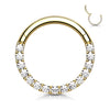 Smelluhringur með steinum. Hringurinn er gerður úr 316L Surgical Steel og PVD húðaður. Lokkurinn er 10mm stór og 1.2mm á þykkt. Hægt er að nota hringinn bæði í Septum og ýmis eyrnagöt.