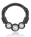 Smelluhringur með steinum. Hringurinn er gerður úr 316L Surgical Steel og PVD húðaður. Lokkurinn er 10mm stór og 1.2mm á þykkt. Hægt er að nota hringinn bæði í Septum og ýmis eyrnagöt.