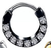 Smelluhringur með demöntum. Hringurinn er gerður úr 316L Surgical Steel og PVD húðaður með platnium. Lokkurinn er 8mm stór og 1.2mm á þykkt. Hægt er að nota hringinn bæði í Septum og ýmis eyrnagöt.